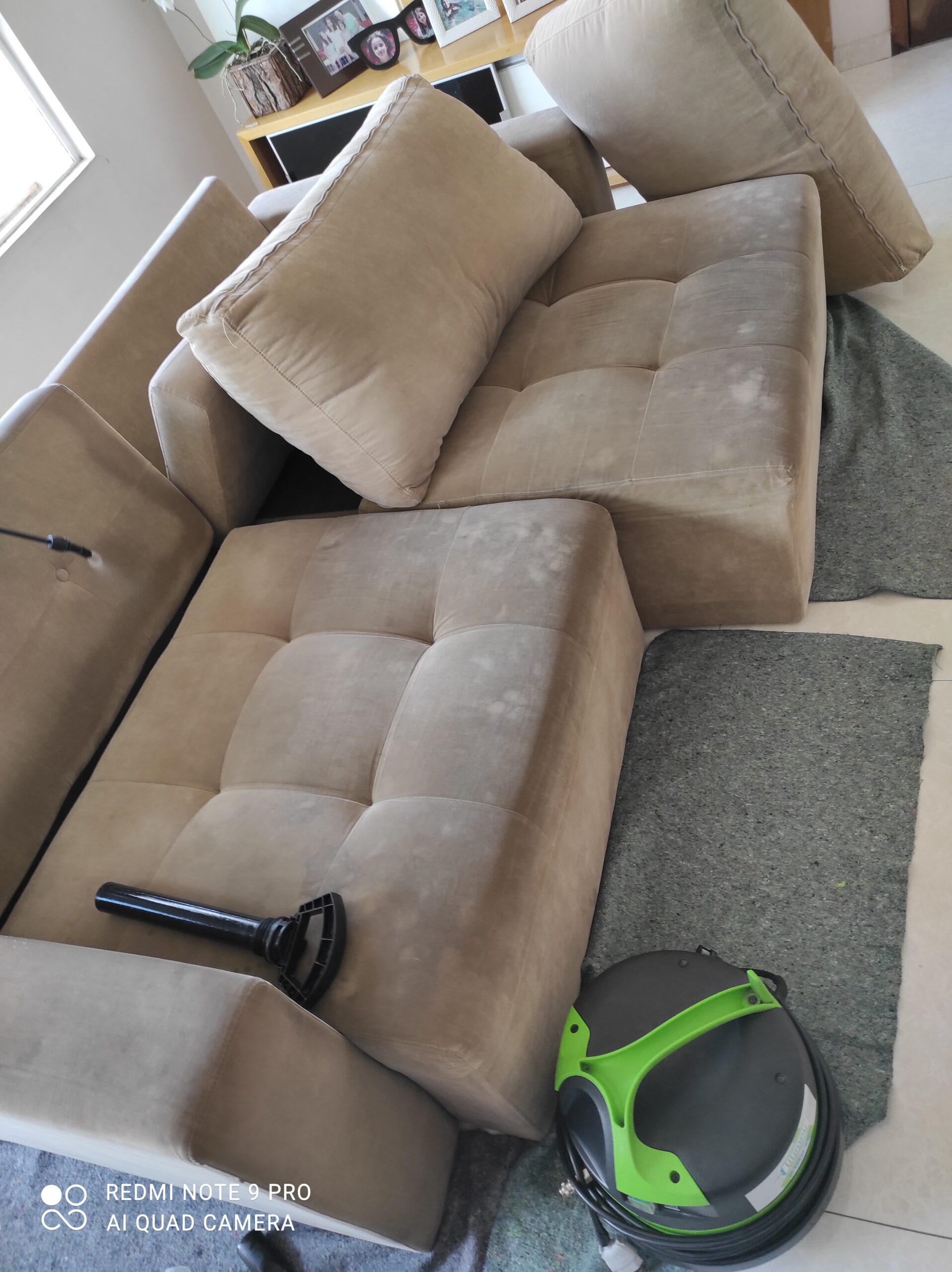 Tipo de serviço: Antes e depois de higienização de sofá. Ao longo dos meses, o sofá acumula diversos tipos de sujeiras, por isso é preciso sempre estar atento com sua limpeza.